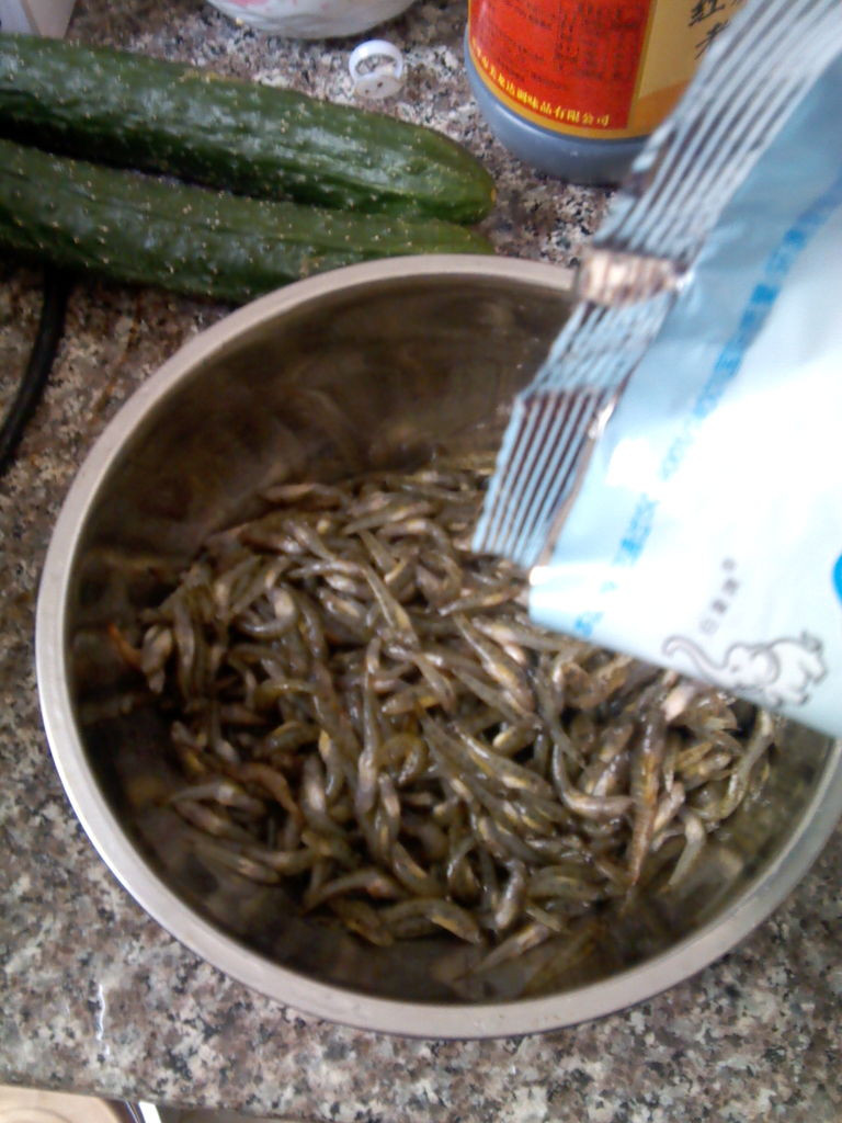 昨天上街看见又买小鱼的就买点点,回家用炒锅干煸一下,很香很脆。