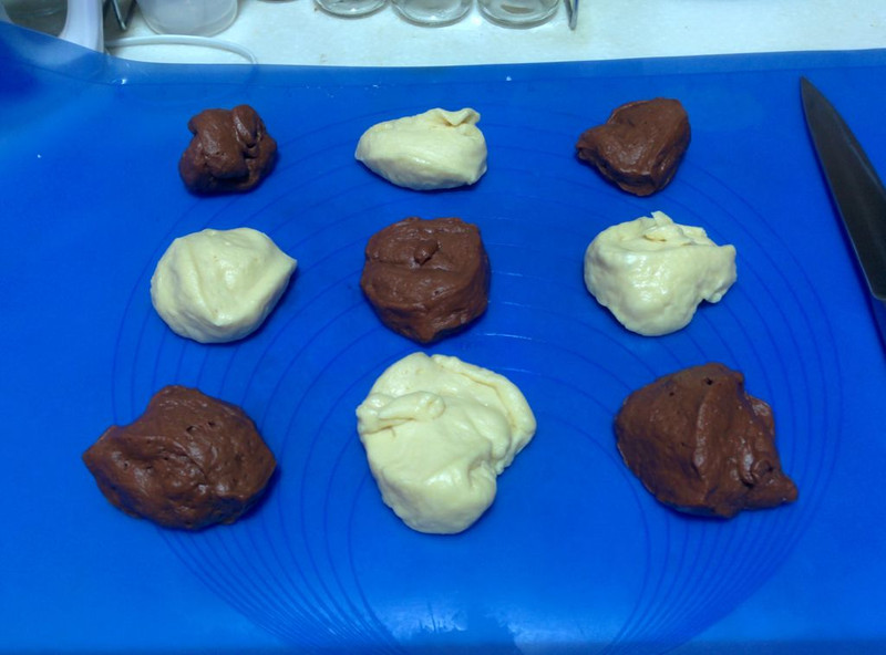这次的面包,仍然用了自由姐<可可双色面包>的方子(750g小) ,上次做是参考书上编辫子扭起来的方法,这次呢,我想换个方法做。