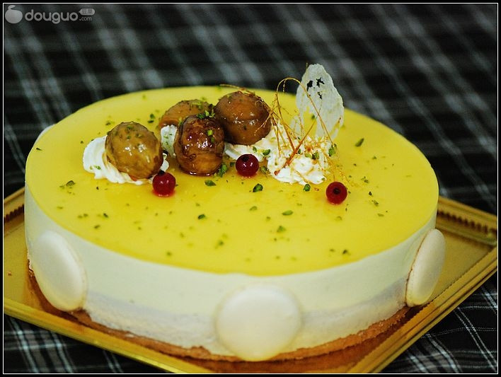 做这款蛋糕最大的收获,是在装饰上用糖花,从外地回来到现在,除了店里很多事情要处理,其他的就是消化学习回来的知识,还有学习一些自己没接触过的东西,各种资料的筛选,等下个星期还要恶补一下其他重要器材的使用,同时发现自己的时间分分秒秒是那么的珍贵,但还是提醒自己注意劳逸结合,毕竟健康才是最重要。看到很多人有假期或者8小时以外的时间来玩烘焙,我只能利用晚上9点下班之后到12点这段时间来学习,偶尔也会在一个星期里选择一天时间休息来玩烘焙,好几次出去学习,老师做的东西到目前为止只能算是开眼界并从中获的灵感,因为毕竟很多原料无法获得,法式西点都是以健康原料为基础,讲究的真材实料,法式西点的各种创意跟口感都是在基础上铸就而成的。现在慢慢转战于新浪微博,那里可以了解更多更新的知识来源。看着老师跟其他一些留学学西点的朋友,自己也会偶尔梦一下,出国去学习西点知识,但更多时候会狠狠掐灭这个念头 。先从基础自学开始。这款蛋糕的口感也很棒,运用了法国进口百香果,百香果的味道对一部分人来说还是很陌生的,它综合了所有水果的味道,香气扑鼻,口感甜中带酸。蛋糕中用到的栗子泥是这次去学习带回来的顶级原料之一,去年做过两款用栗子为原料的栗子蛋糕,那时用手指一颗颗剥出来,剥完手指都费了,为了做蒙布朗蛋糕,栗子是重要的原料,现在当我拥有这些原料的时候,我想什么时候做都可以了,不用再费心思去寻找了。蛋糕上面的装饰很随意,当时想到栗子蛋糕要突出主题,点缀上放几颗栗子,栗子一经烧熟,颜色是会变暗色,如果大家看到栗子跟原来生的一样是黄色的,那么肯定是被添加剂过的。如何保存栗子的颜色,确实想了一些办法,最终想到用焦糖来包裹,也就是在煮糖水的时候,偶然性的看着糖水随着温度变化,跟巧克力融温一样,其中涉及到了珊瑚糖跟焦糖拉丝,虽然做这些会浪费一部分糖,但是看着他们在手中慢慢变化,你会发现其中乐趣无穷。很遗憾,我只是给蛋糕留下了最后的倩影,因为第一次接触到糖艺,根本不知道他们是如何产生,还有如何保存,到最后进冰箱的时候。糖花跟焦糖丝全部融化,我在新浪微博发信息求救解答,还有些群里的朋友也无法告知,只能电话上海的老师,在老师解答后,也明白西点里另外一门高深技术,跟巧克力并排的糖艺。好了,接下去上蛋糕