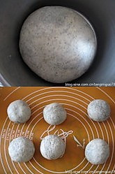 Tips:1.面团表面的黑芝麻不需要先烤熟。2.滚圆后的面团呈圆球形,需将底部粘贴紧,这样烘烤后才不会爆开。