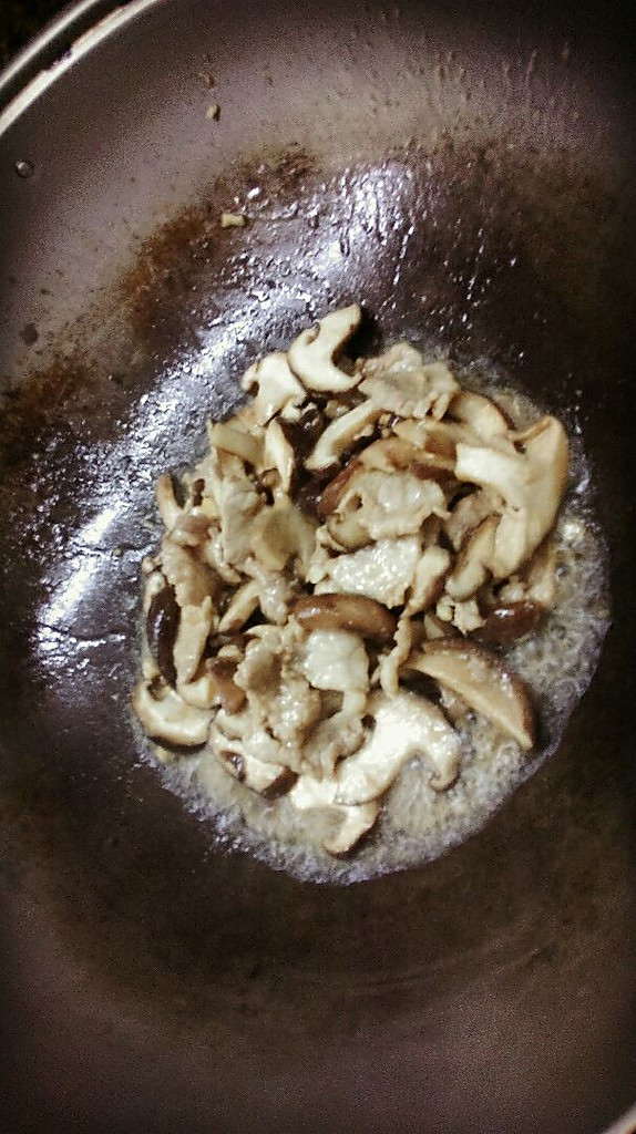 香菇要烫过在炒,热水滚过放香菇,然后捞起来沥干。