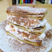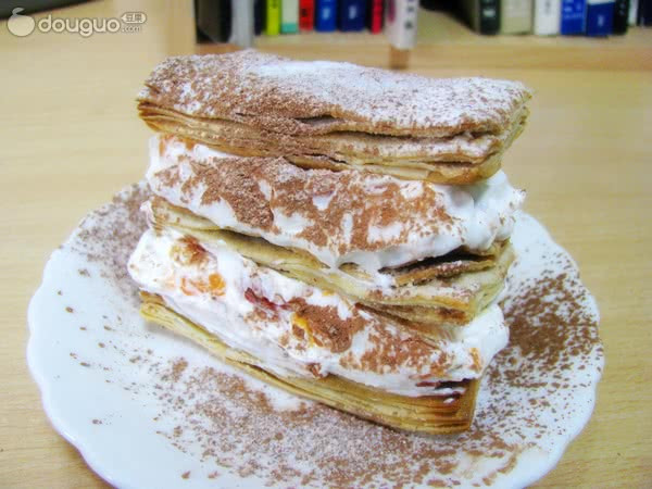 不用担心这款甜品的糖份过高,因为派皮中完全没有加糖,只在奶油中加了少许糖和最后撒的那一点点糖粉。