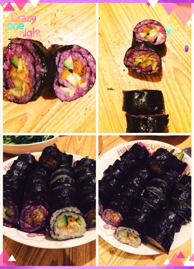 1.米饭不要太粘,比平时干一点好。2.用寿司帘或者不用都可以上网看下视频学一下怎么卷。3.紫薯最好还是不用碾碎直接放块比较好吃,后来发现,红薯比紫薯好吃,最好放红薯条