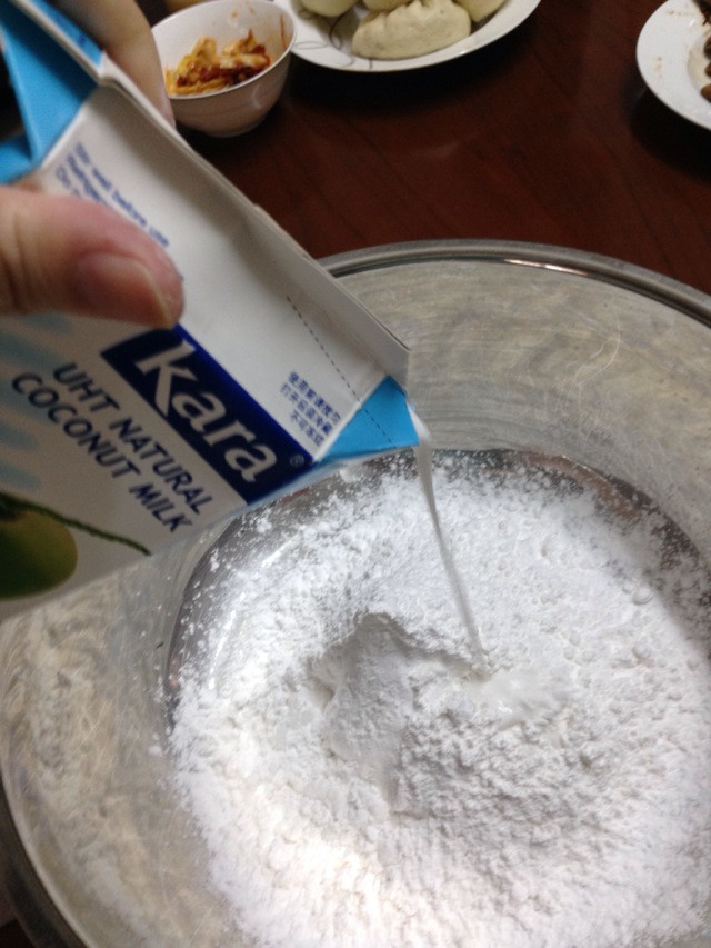 就是把所有原料搅和在一起,一点也不难,耗时而已,一定要蒸熟了,才能做下一层!