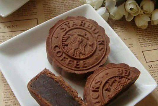 星巴克月饼 【用料】 饼皮:普通面粉220克、好时巧克力酱220克、玉米油60克 馅料:摩卡咖啡400克、红酒蔓越莓100克 模子:100克月饼模(摩卡咖啡馅料的8个,红酒蔓越莓馅料的2个) 【做法】 1、饼皮材料混合,揉均匀,盖上保鲜膜,室温静置松弛半个小时; 2、利用饼皮松弛的时间,分割馅料,每个50克,搓成小球状,备用; 3、松弛好的饼皮,分割成每个50克,团成球状,备用; 4、取1个饼皮,压扁,放上馅料; 5、右手将馅料向乡里推,同时左手旋转将饼皮均匀贴着馅料推开; 6、直至饼皮完全包裹住馅料,捏紧收口,在面粉里打个滚儿,双手来回搓下,使面粉均匀分布在月饼生胚上; 7、月饼生胚放入模里,可以用手稍稍按压; 8、模子垂直放在垫锡纸的烤盘上,用力压下; 9、松开手,压下的花片会回弹至原来位置; 10、抬起月饼模,推出月饼生胚; 11、月饼生胚排放在烤盘中,入预热180度的烤箱,中上层,20分钟左右,出炉室温放置,凉透后放入密封盒保存,1-3天就能顺利完成“回油”,月饼从里到外都变得软润。