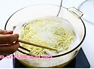 ***捞出的面用风风机吹,是为了能让面条表面的水分马上挥发,保持面条的弹性不被水气泡糟。面条吃之前如果凉了,再在开水里过一下,马上捞出控干。
