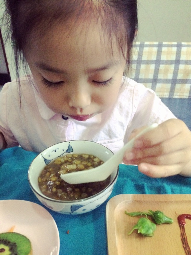 #依家早餐# 辫子面包,绿豆粥,秋葵,猕猴桃。梅雨季,雨一直下,出门记得带伞哦!今天依呀起得早,淘淘还在睡觉。