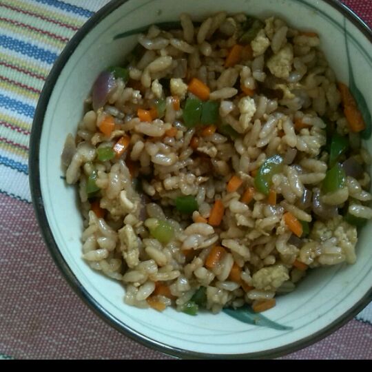放了洋葱,胡萝卜,青椒,鸡蛋,味道不错!