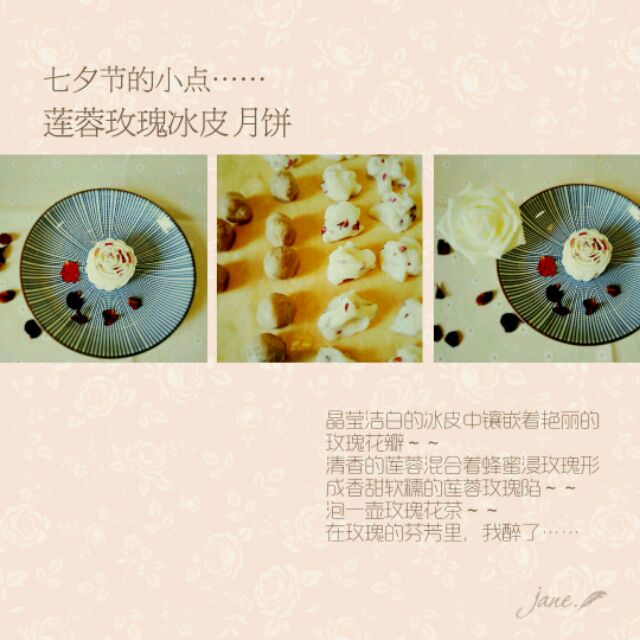 > 莲蓉玫瑰冰皮月饼