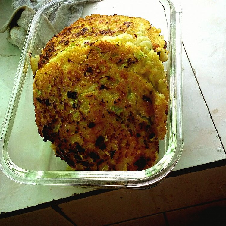 早上起来用剩饭、卷心菜和鸡蛋做的中午饭,第二次尝试终于成型啦!
