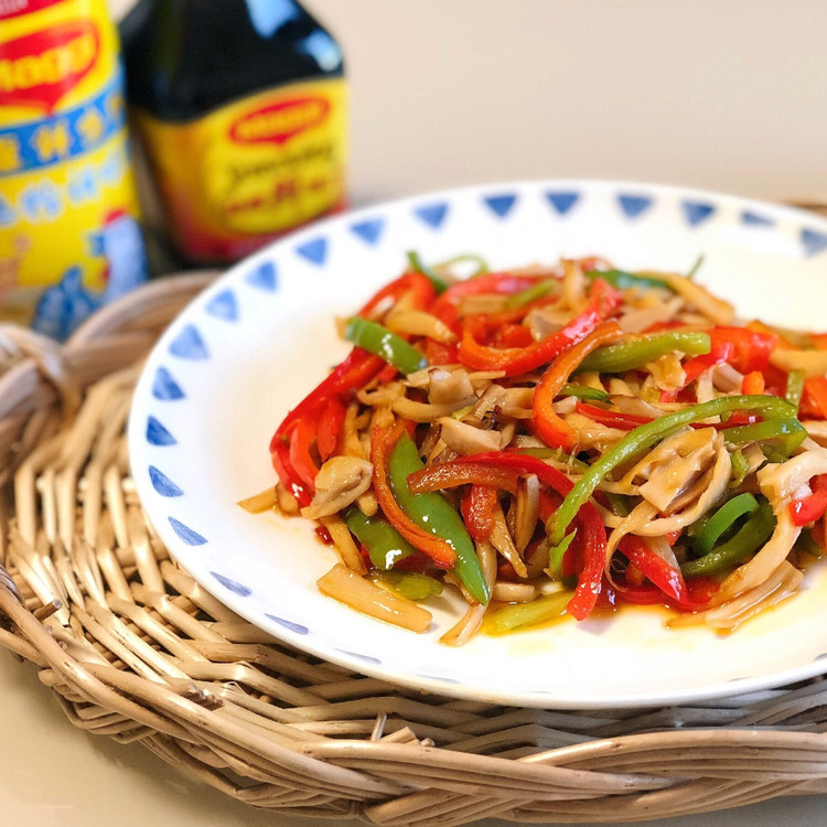 > 三彩手撕杏鲍菇#美食美刻 乐享美极#
