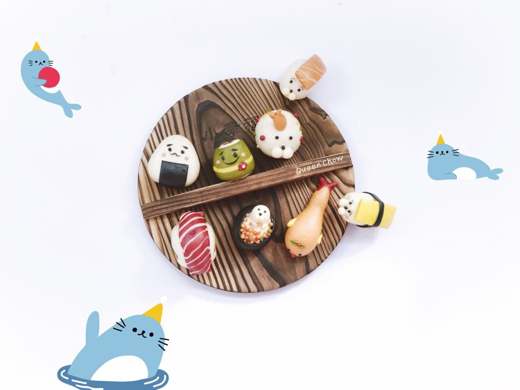 学做的菜谱:【卡通馒头卡通包】寿司海豹君