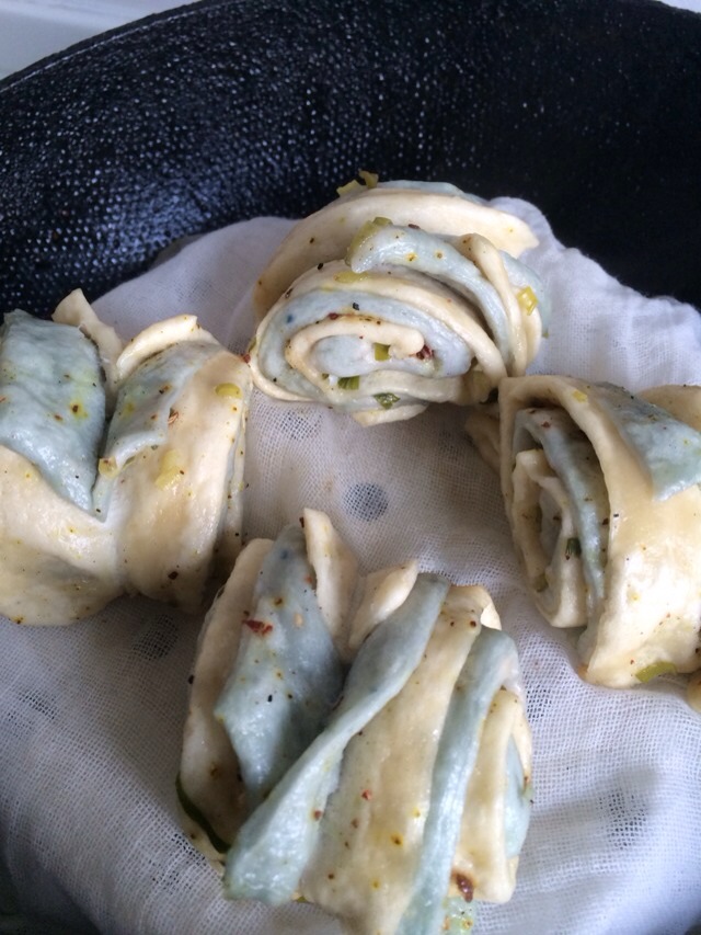 蓝色是用紫甘蓝汁活的面,好看好吃