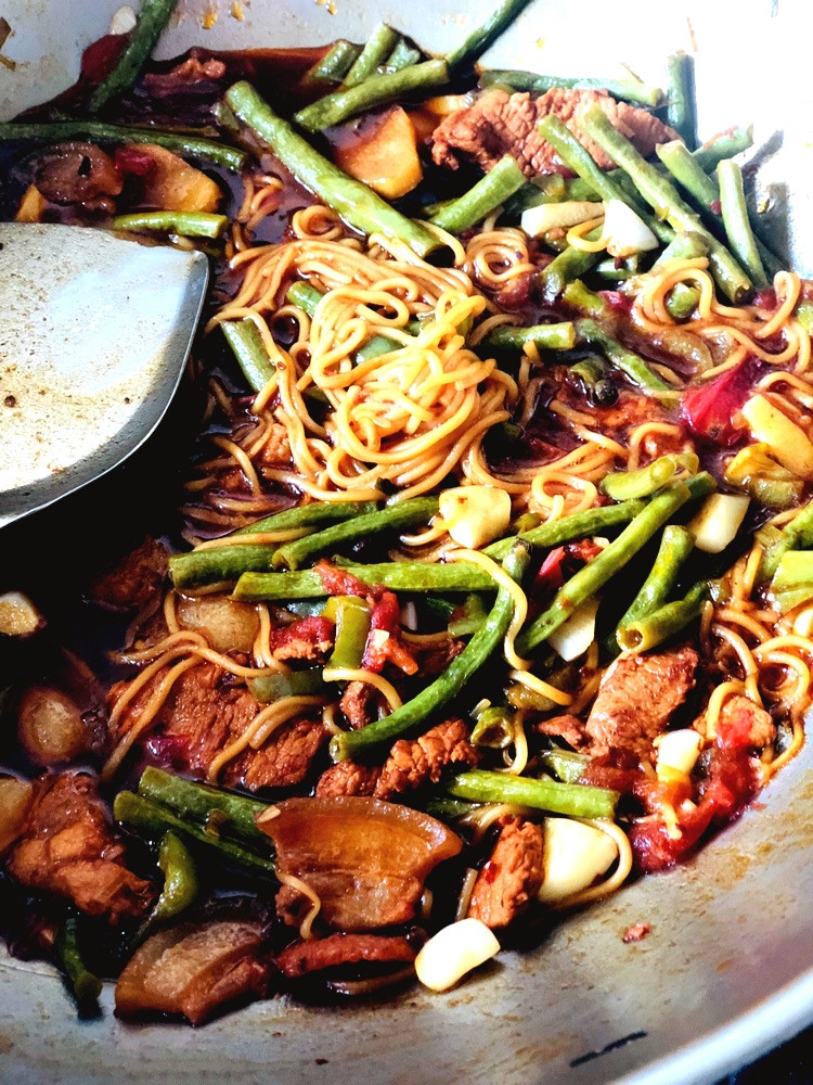 你当前的位置:豆果美食 > 笔记 > 我做的时候买了带肥肉的五花肉,把猪油炒出来,之后加入一个番茄,一勺老干妈,蚝油,生抽,老抽,料酒,糖,盐,八角,花椒,炒炒炒,加入豆角,加水,加面,最后放入青椒,开锅前加鸡精,生蒜末。保证吃了还想吃