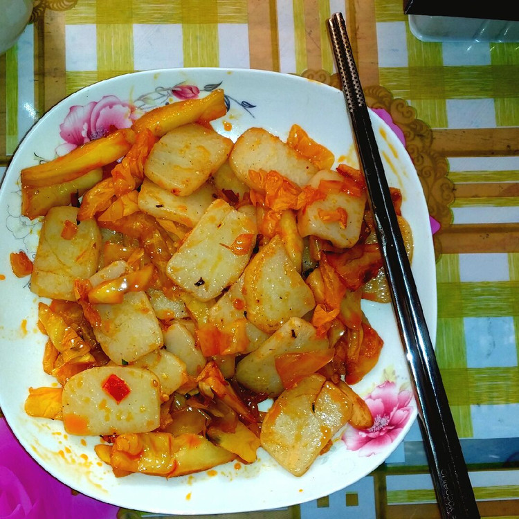 韩式辣白菜炒年糕条#金龙鱼外婆乡小榨菜籽油#
