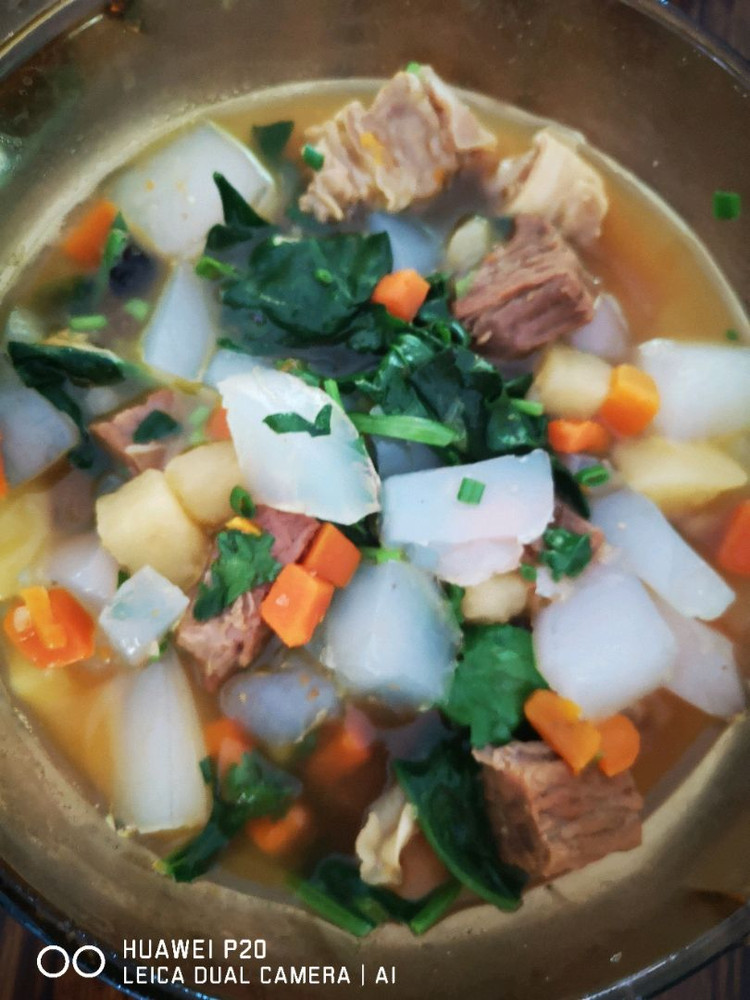 很想念新疆的羊肉粉汤。南方天气酷热,不适合多吃羊肉,容易上火,家里正好有从新疆带来的牛腩,自己做的粉块,一锅热气腾腾新疆粉汤出锅了。