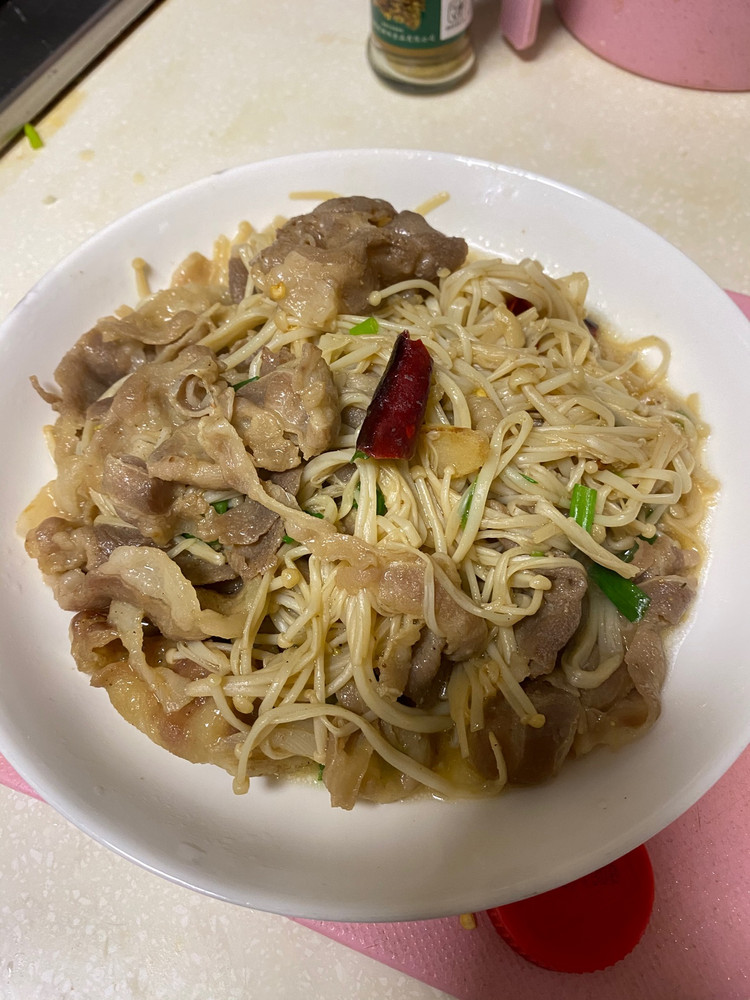 金针菇炒羊肉卷