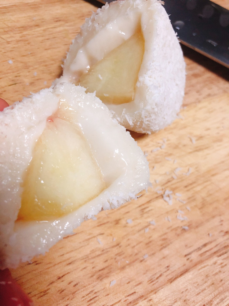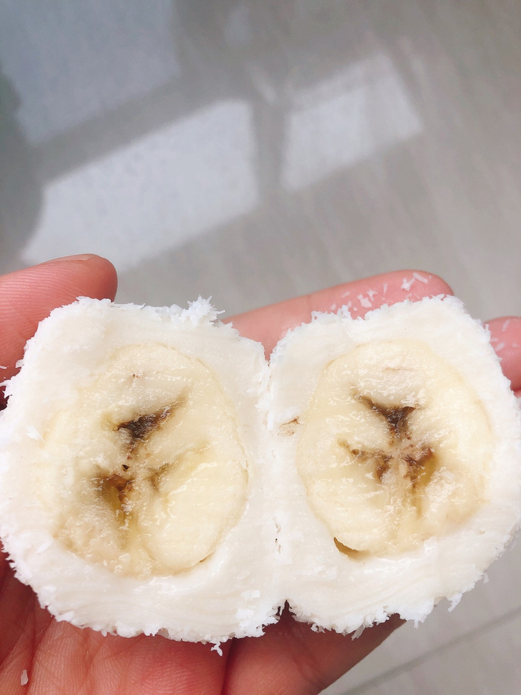 你当前的位置:豆果美食 > 笔记 > 照这配方做了芒果、香蕉和蟠桃的。因为家里有人对芒果过敏所以突发奇想的。但是没想到夹蟠桃也非常好吃。大小不一是因为我把水果切得太随性了。吃不完放冰箱第二天拿出来常温下缓缓一样软软糯糯好吃。粘手就沾点凉开水。很管用。
