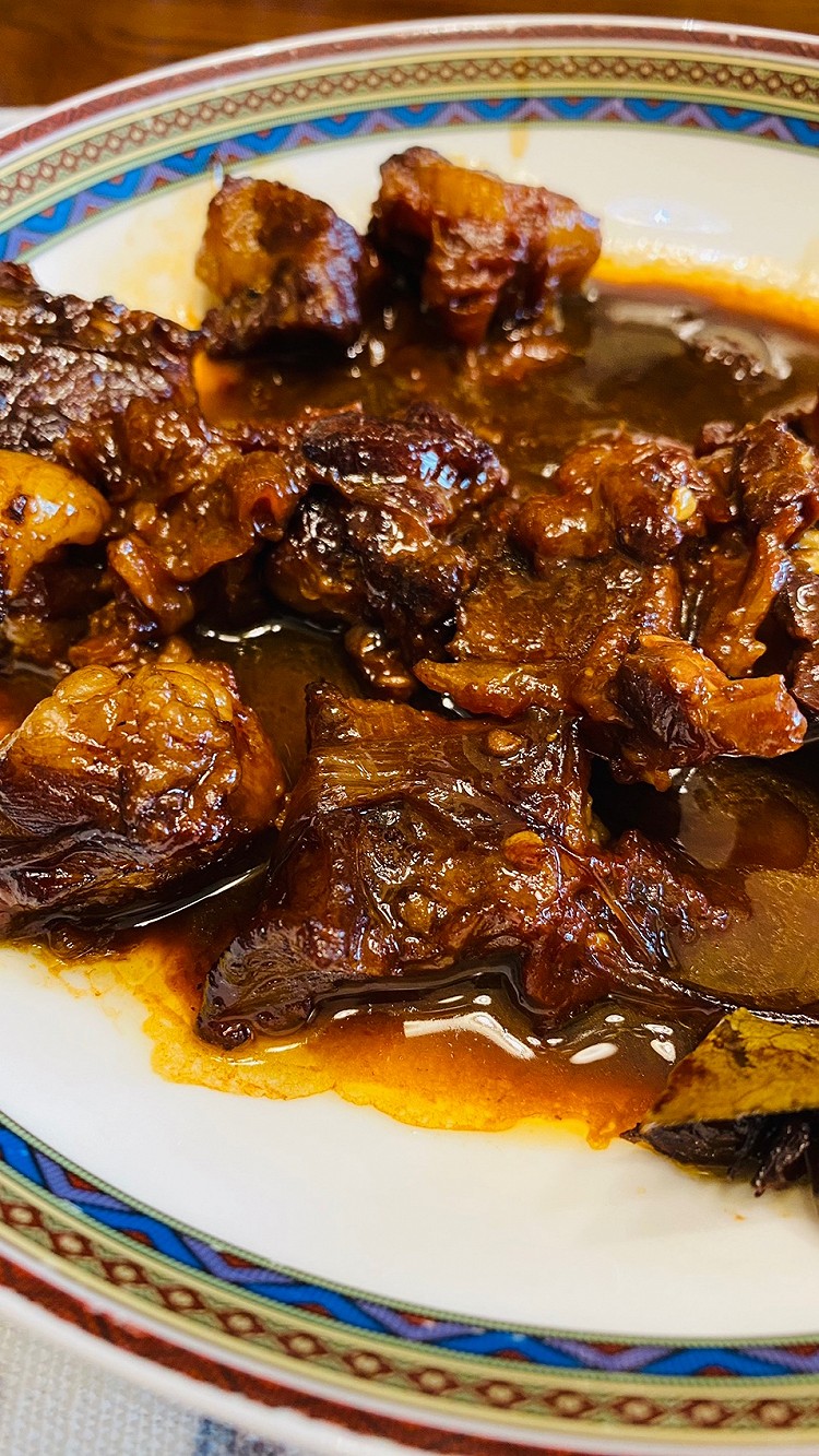 > 只放了番茄,小火一个小时,牛腩口感特别好,筋的口感是软糯的。我加了两粒丁香,没有放土豆和胡萝卜,所以肉汤粘稠浓郁