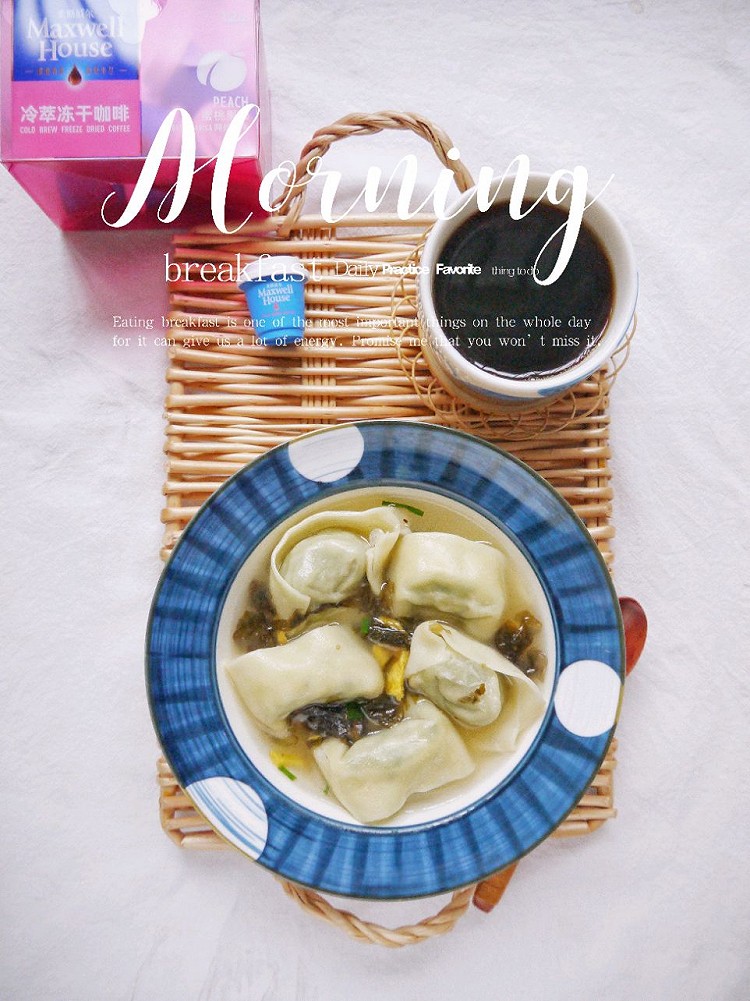 早安~~黑咖啡+菜肉馄饨~~ 这降温可降得真猛,早上该吃点热乎的了🤪🤪🤪