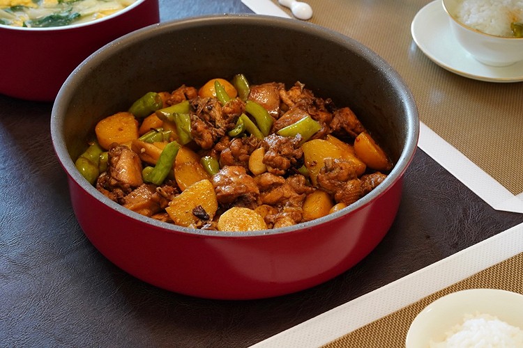 茄子不是普通的凉拌茄子哦,味道很特殊的香,炒饭是黑松露炒饭,土豆烧鸡香死了,万能调料拌面条,麻油莴笋。
