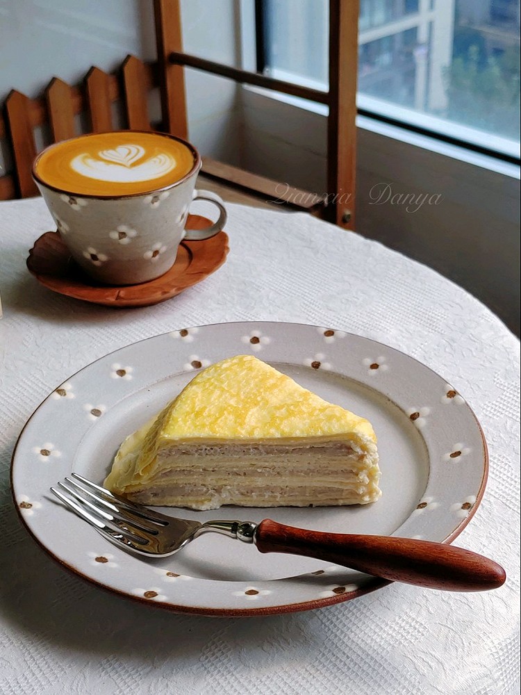 ─♡早安♡─ ☆榴莲千层 ☆水果酸奶杯 ☆咖啡☕ 🌿冰箱库存还有最后一块榴莲千层,来一份简单却又高热量的早餐