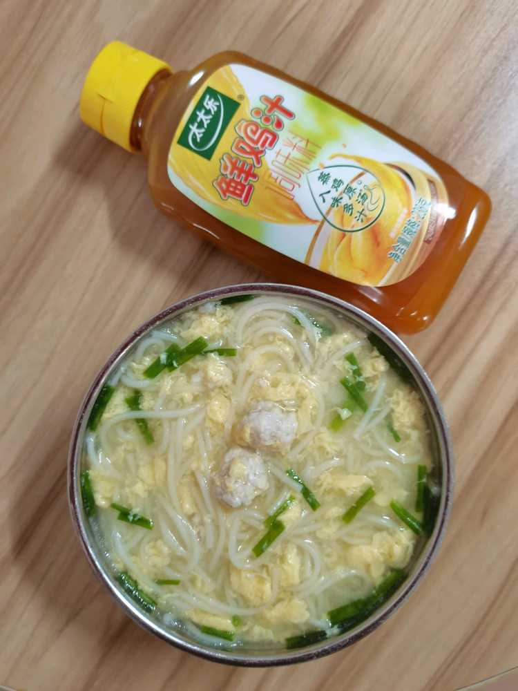 一抓面条,一鸡蛋,几颗鸡肉丸,几根葱,淋上鸡汁,速度又快捷,不失鲜美不失美味。