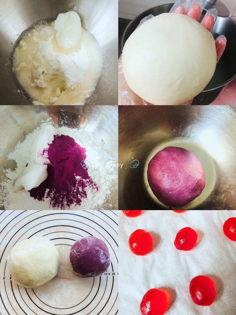 2️⃣做油酥,低筋面粉和猪油、紫薯粉搅拌成团.